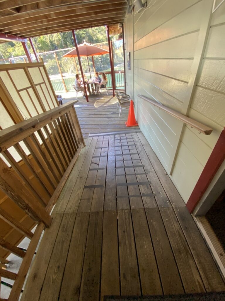 We also offer a ramp and partially ADA accessible guestroom (Room 18). Please note that there are grab bars in the bathroom and ample room in the guest room for navigating a wheelchair, walker or cane. We are available by phone to answer accessibility questions: 707-964-5049. Click to expand photos.